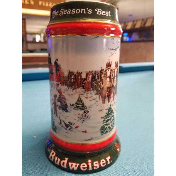 1991 Anheuser Busch AB Budweiser Bud Holiday Christmas Beer Stein Clydesdales