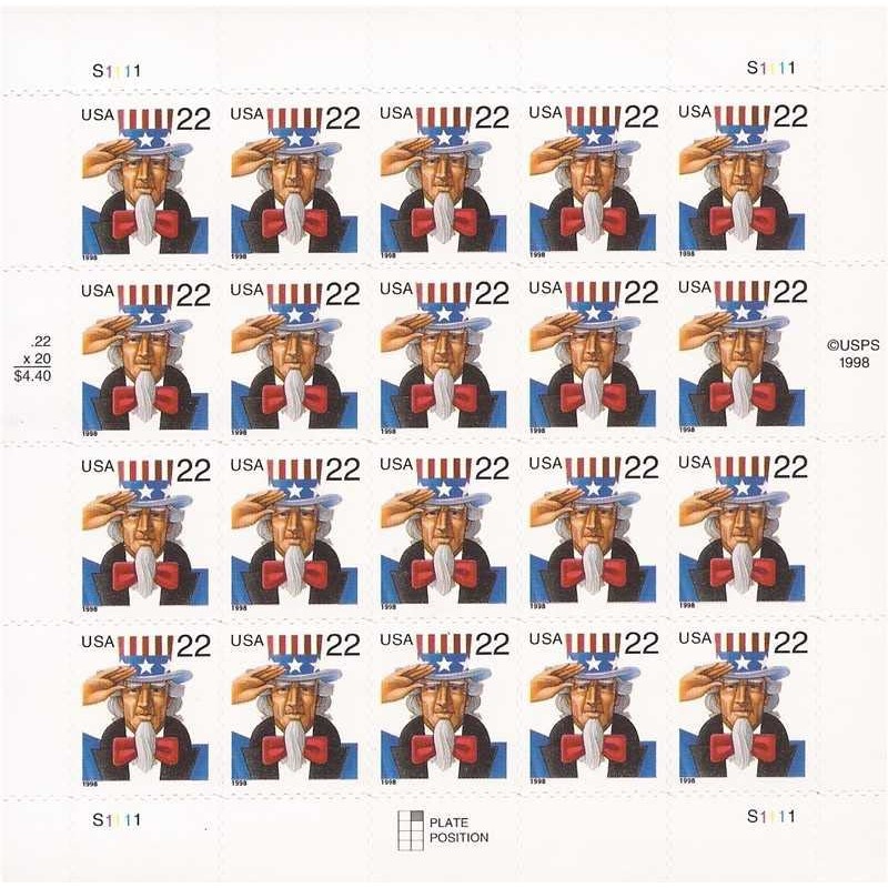1998 Uncle Sam - Sheet of 20 22-cent stamps - Scott 3259