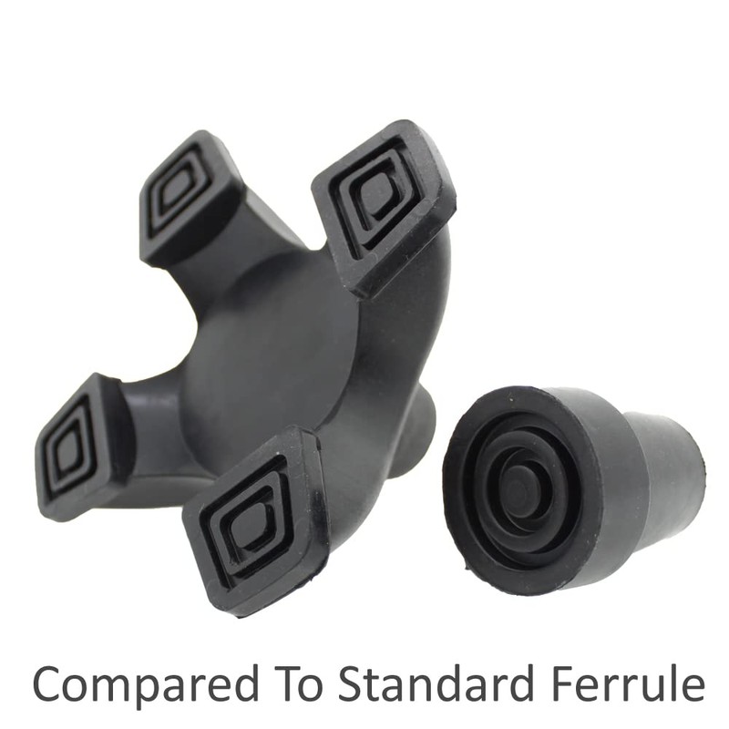 - Offers improved safety and stability due to its high grip rubber construction and four tip base