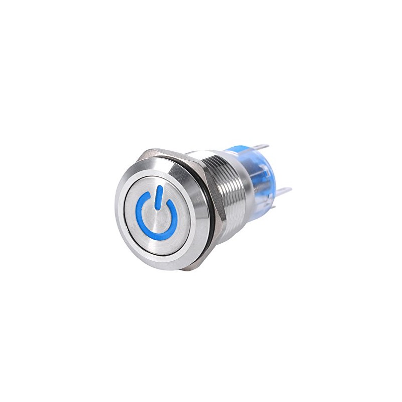 19mm Enclavamiento Pulsador De Botón, Interruptor de encendido de botón de cierre autoblocante de 19 mm 12V LED a prueba de agua(Blue)
