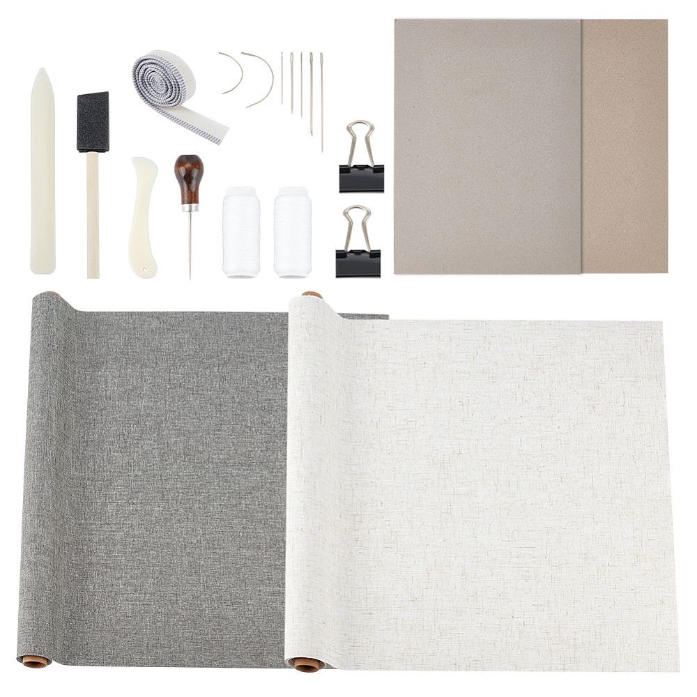 Bookbinding Kits, Including Polyester & Linen Fabrics, Paper Book Board, Carbon Steel Needle, Awls, Clips, Polyester Cords & Headbands, Brush, Paper Slicker, Mixed Color