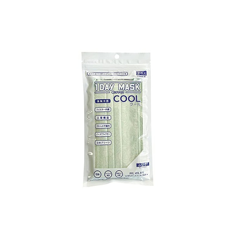 1DAY MASK COOL EMBOSS-GRE Regular Size, 7 Pieces, 1 Bag, Set of 2 Bags, Cooling Non-Woven Mask, Patterned Mask