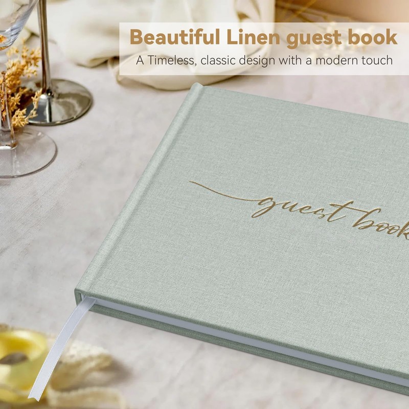 1DOT2 Linen Wedding Guest Book for Guests to Sign - The Perfect Photo Guest Book for Wedding Reception Bridal Shower,Baby Shower - 100 Pages Blank and Lined Acid Free Paper (Sage Green, No Year)