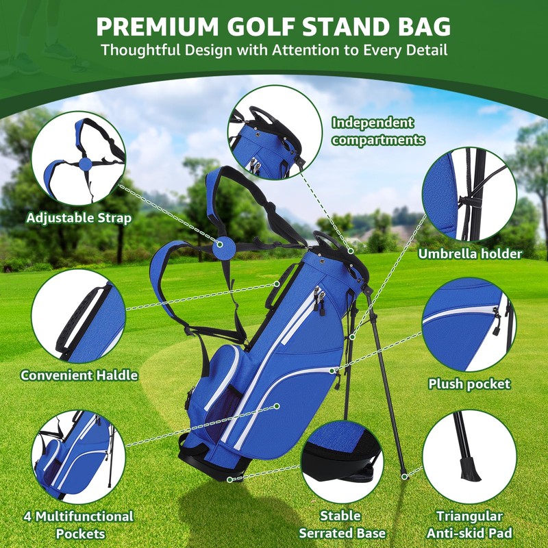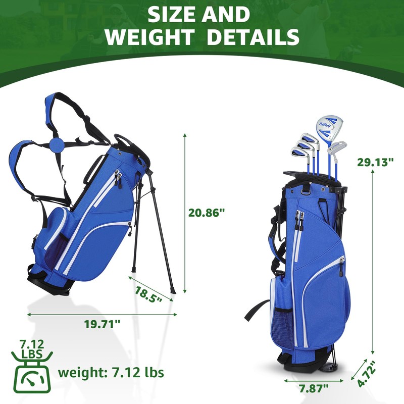 - 🏌️♂️【7-Piece Golf Set】 - This golf club set consists of lightweight stand bag with hood,1# Drive, 7# 9# PW# irons and putter. 1# Drive wood is equipped with a head cover for better protection.