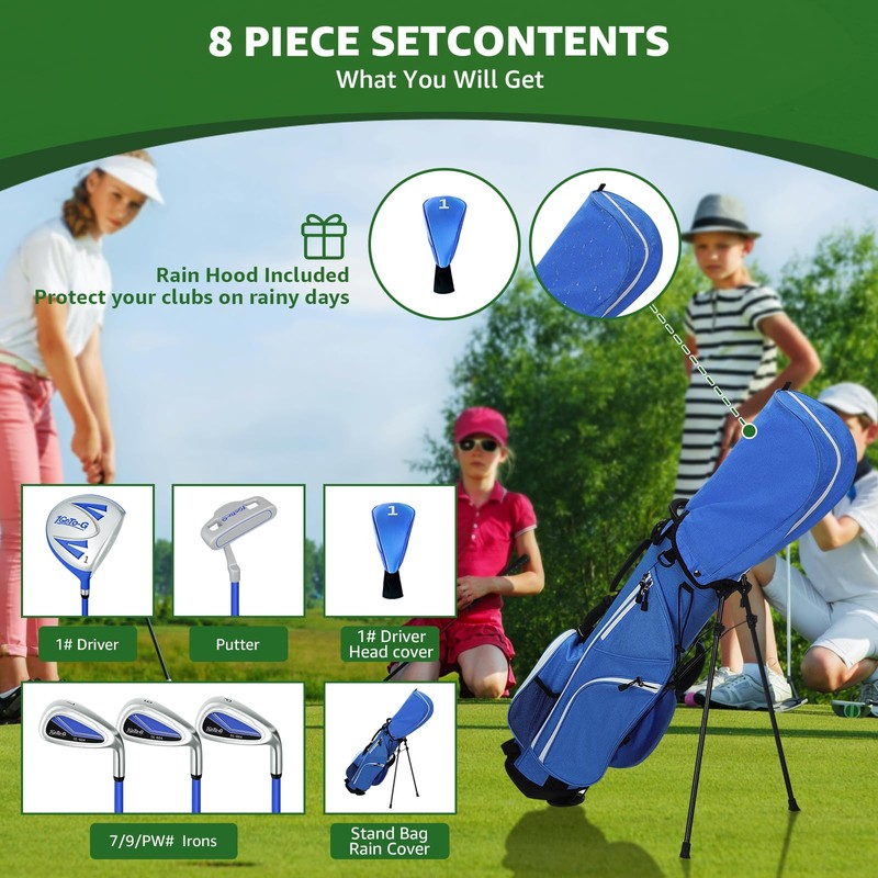 1GoTo-G Kids Golf Clubs Set, Youth Golf Clubs Junior Set Ages 9-12 Includes Stand Bag, 1# Drive, 7#, 9# PW# Irons and Putter Right Hand for Boys Girls