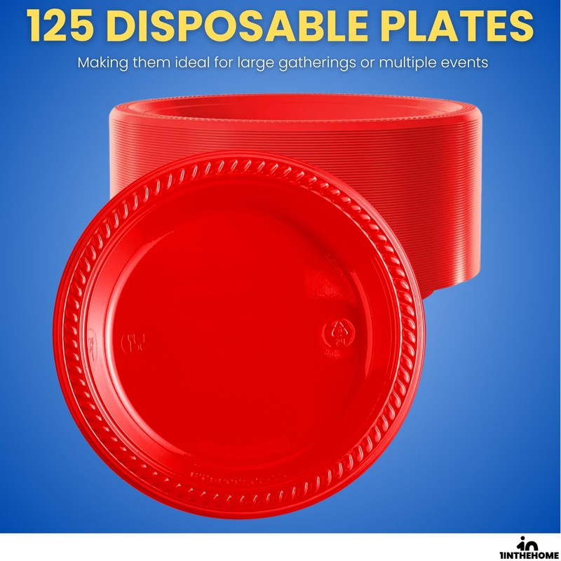 1InTheHome Red Party Plates, Red Dessert Plates, Disposable Plastic Plates, 6 Inch Diameter, 125 Pack