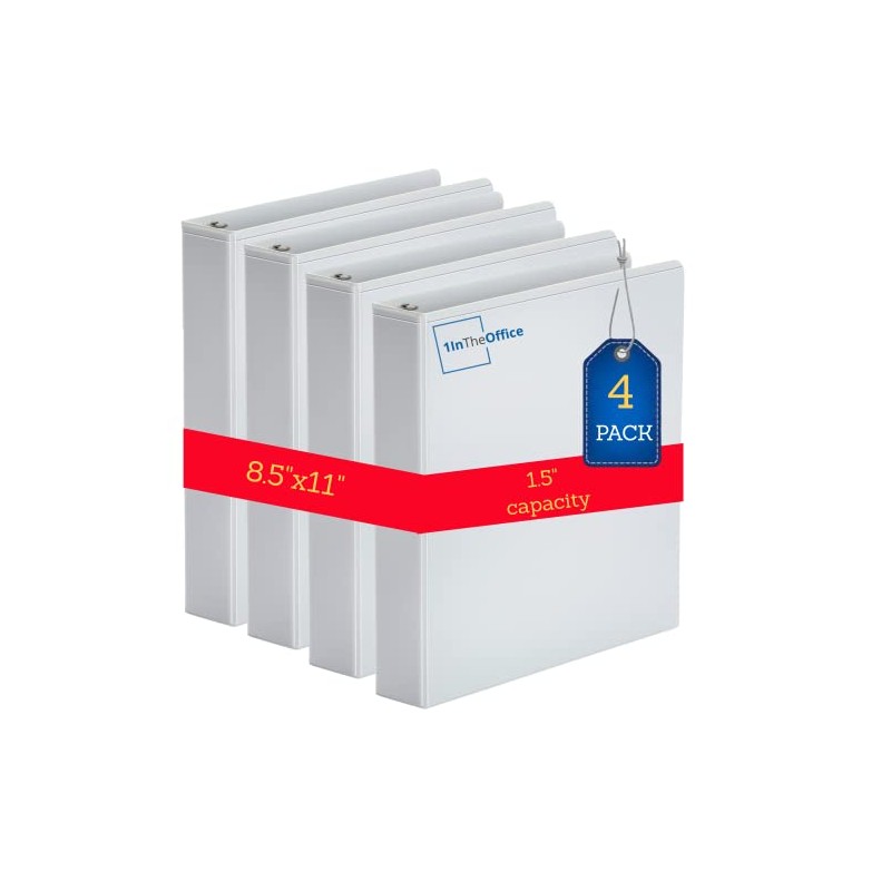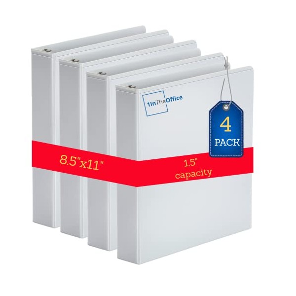 1InTheOffice Binders 1.5 Inch 3 Ring, 3 Ring View Binder, 1.5 Inch Round Ring, Customizable Cover Binder, Fits 8.5x11 Paper, (4 Pack)