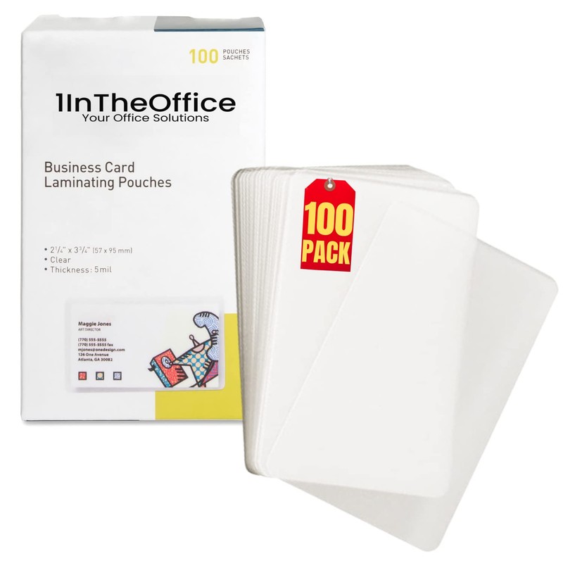 1InTheOffice Business Card Laminating Pouches, 5 Mil Laminating Pouch, Plastic Laminating Sheets, 2.25"W x 3.75"L, 100 Pack