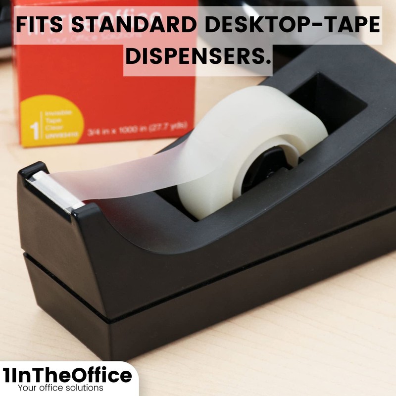 • With an invisible tape design and a 1-inch core, this clear adhesive tape ensures a seamless and discreet finish on documents and packages.