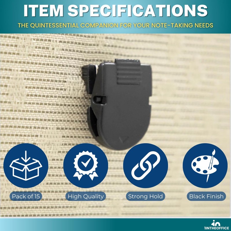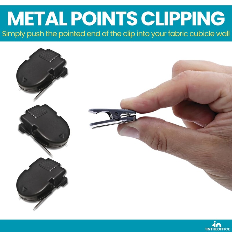 1InTheOffice Clips para cubículos, clips de pared para tela, negro, paquete de 15