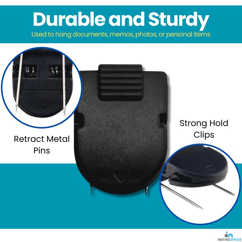1InTheOffice Clips para cubículos, especialmente diseñados para superficies de tela. En un elegante acabado negro, estos 15 clips por paquete no solo son elegantes, sino que también se combinan perfectamente con una diversa decoración de oficina, añadiendo un toque profesional a tu espacio de trabajo. Con versatilidad en su núcleo, estos clips de pared se fijan de forma segura a las superficies de cubículos de tela, asegurando un agarre fiable para los documentos y promoviendo un entorno de trabajo organizado. Los clips ofrecen funcionalidad y estilo, contribuyendo a la estética general de tu oficina. Las características clave incluyen una generosa cantidad de 15 clips por paquete, lo que garantiza un amplio suministro para diversas necesidades organizativas. Su fiable mecanismo de fijación protege contra el deslizamiento de los documentos, mientras que el color negro irradia un aspecto pulido y cohesivo. Más allá de la organización de documentos, estos clips resultan multifuncionales, sirviendo como herramientas prácticas para crear tablones de anuncios o mostrar recordatorios. Mejore la productividad y la estética del espacio de trabajo sin esfuerzo con estos clips de cubículo 1InTheOffice.