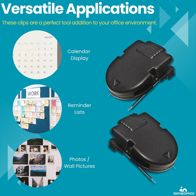 • Los clips de pared están diseñados específicamente para superficies de tela, proporcionando una solución práctica para organizar documentos y personalizar espacios de cubículos.