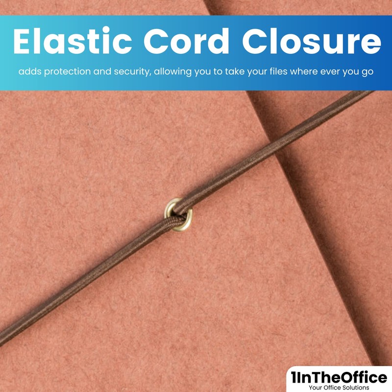 Keep your expandable legal-sized documents organized with this 5 1/4" extra wide expanding file pocket with an elastic cord! This convenient file pocket has the ability to expand to 5 1/4" thick, providing plenty of room for all your reports and business proposals. Its extra-wide construction allows you to insert top tab folders with ease without bulging the side gussets. Plus, its protective flap and elastic cord ensure security while in transport. Made of high-quality, 11 pt. stock that resists tearing, this folder is perfect for keeping various types of documents separated for superior organization. it's also constructed of at least 30% post-consumer recycled content, making it more environmentally friendly than standard file pockets. Ensure every document is exactly where it should be with the help of this file pocket!