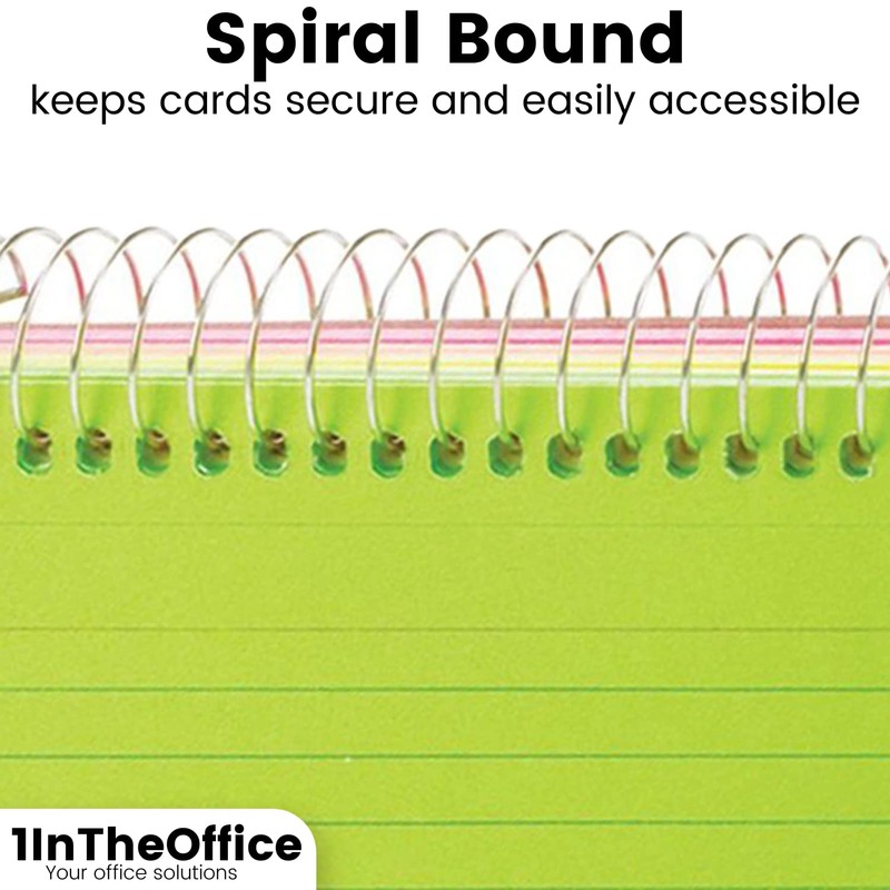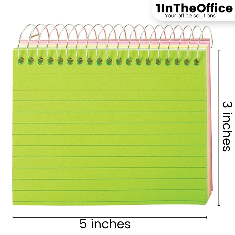 1InTheOffice Spiral Bound Index Cards 3x5 Ruled, Colored Wirebound Index Cards, Neon Note Cards/Spiral (3 Pack)