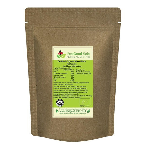 - Cefrified Organic Brazils 33%, Walnuts 33% , Cashews 34%