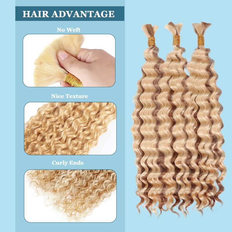 2.Bulk Hair Texture: Deep Wave Bulk Hair P27613 Human Braiding Hair.