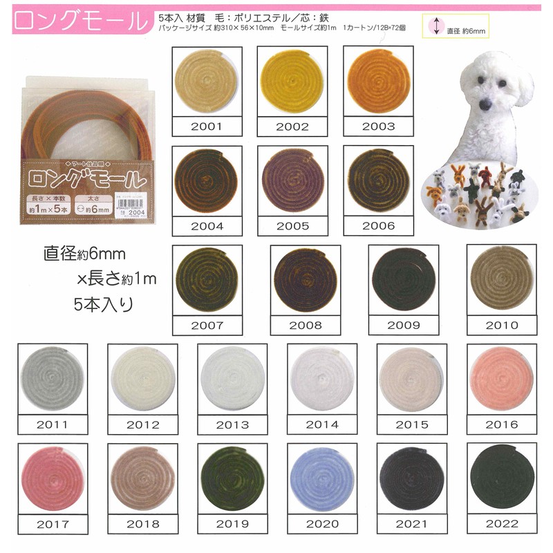 創&遊 アート作品用ロングモール 長さ1m・太さ6mm(二分) 2012/白系 5本入