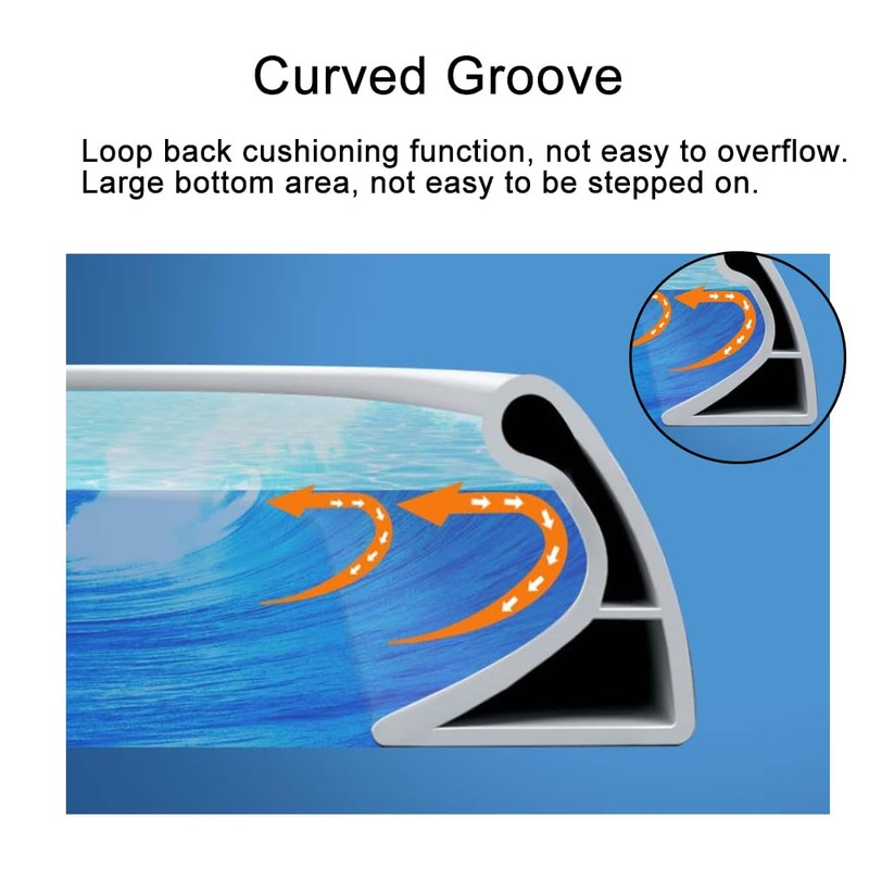 【Curved Groove】The shower splash guard with curved groove design, with loop back cushioning function, not easy to overflow. The bottom area of the adhesive strip is large and firmly affixed, so it is not easy to be stepped on. The shower threshold water dam has a smooth surface that's easy to clean, just a quick wipe with a wet wipe.