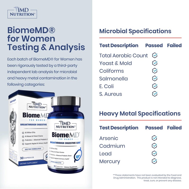 1MD Nutrition BiomeMD Probiotics for Women - Daily Prebiotics and Probiotics for Women - More Than 60 Billion CFUs, 15 Strains - Womens Probiotic to Support Urinary & Vaginal Health - 30 Capsules