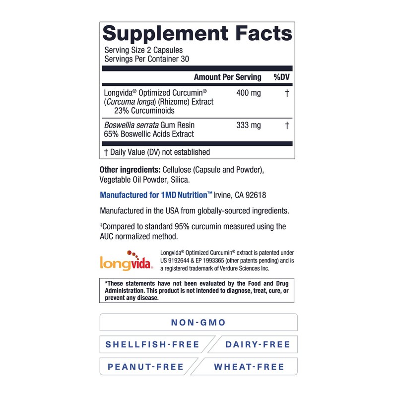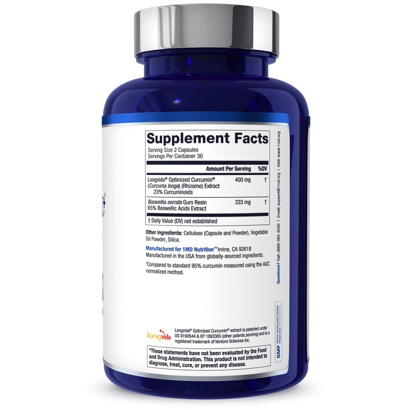1MD Nutrition CurcuminMD Plus - Turmeric Curcumin with Boswellia Serrata - 285x More Absorbable | Joint Stiffness, Muscle Recovery, and Mood Support | 60 Capsules