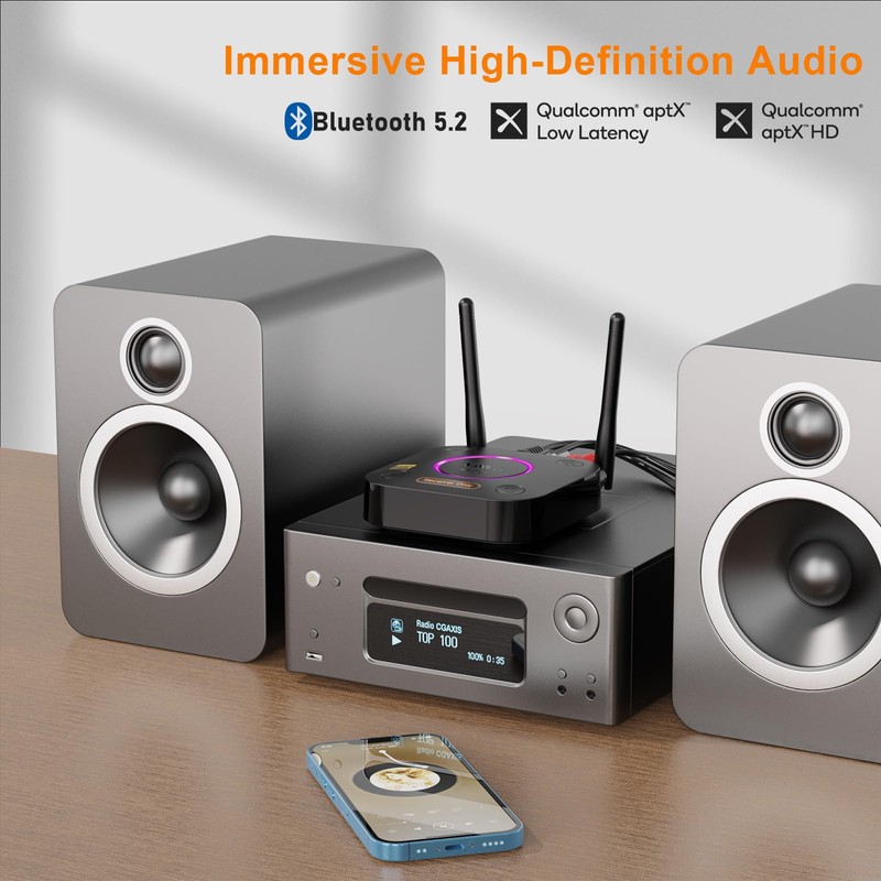 - 【BLUETOOTH 5.2】1Mii B06Ultra Bluetooth receiver for home stereo features Qualcomm Bluetooth 5.2 chip to ensure high fidelity Bluetooth audio signal for music streaming to speakers or home stereo systems that doesn’t have the capability. With the latest Bluetooth 5.2 chip, it adds Bluetooth streaming to an older stereo system, which allows you to stream wireless music seamlessly.