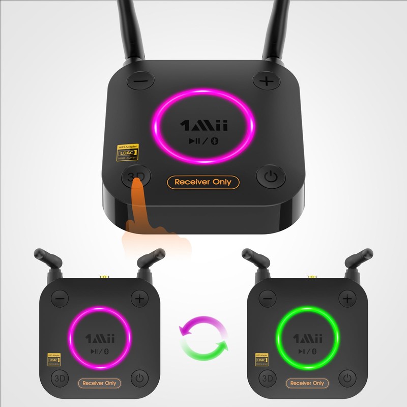 - 【aptX HD&LL&3D AUDIO】This Bluetooth adapter also supports aptX HD and aptX Low Latency. And the 3D audio can be switched on or off by pressing the “3D” button on the Bluetooth audio receiver. The green LED will be on when switched to 3D audio.
