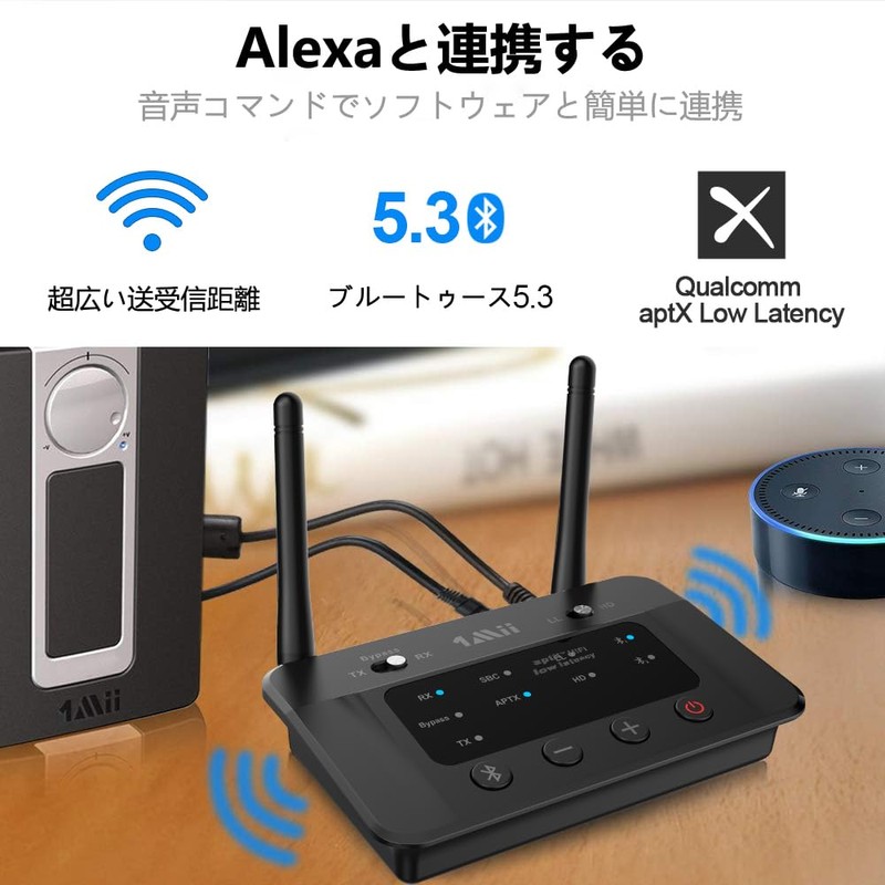 1Mii Bluetooth Transmitter, Audio Receiver, Bluetooth 5.3 Transmitter, Receiver for TV Amplifier, Aux, Optical Digital RCA USB, aac aptx-ll, Low Latency, Aptx HD Classic, Dual Earbuds/Headphones Simultaneous Connection, Volume Adjustable, Bluetooth Trans