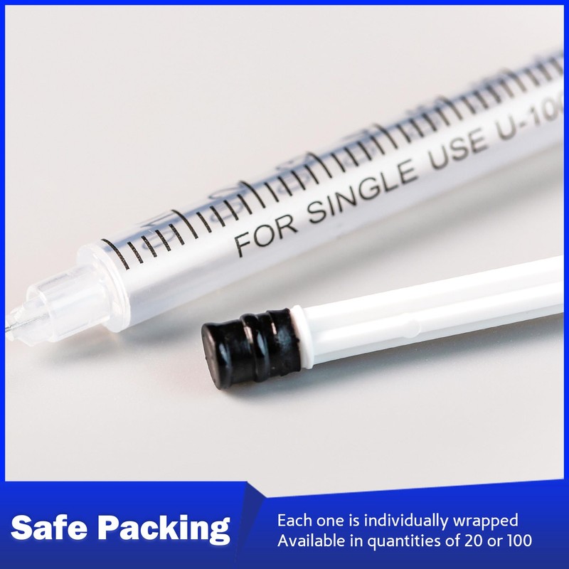 - Single Sealed Packaging - Each 1 mL 31G 1/2" syringe is individually sealed. You can choose between packs of 20 or 100 units