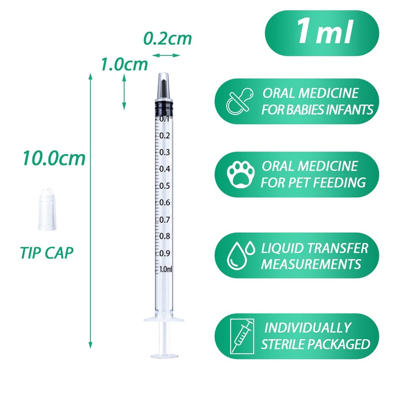 - 1ml Syringe for Liquid, Oral, Scientific Labs, Measurement, Dispensing, with Cap