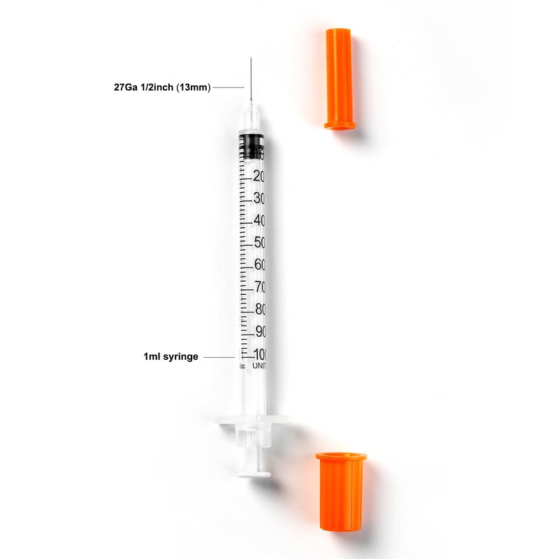 - Come with 20 pack 1ml syringe with 27 Gauge 1/2" needle and protect cap, enough for use or replacement.