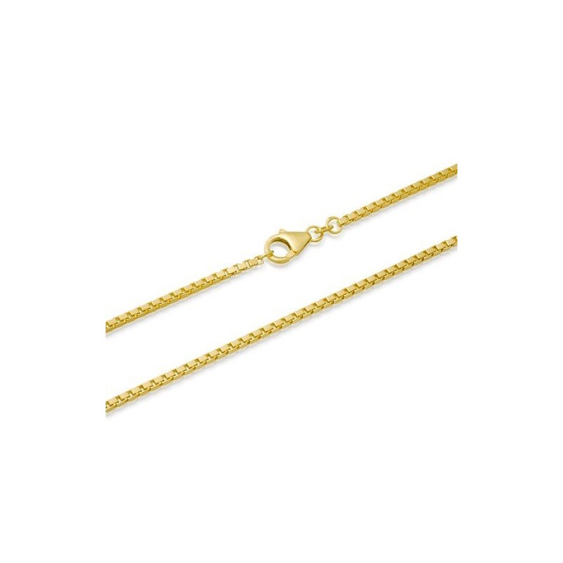 1mm 18K gold plated on solid sterling silver 925 Italian diamond cut BOX link chain necklace bracelet anklet with lobster claw clasp - inch 16"/40cm