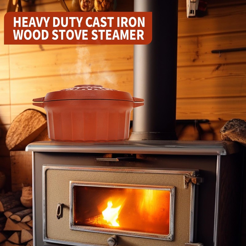 - DURBLEMATERIAL,REFUSE RUST - The small decorative wood stove cast iron humidifier/steamer is perfect for small wood stoves. It is made of cast iron with a porcelain enamel coating on the inside to prevent rusting, fading, or peeling.