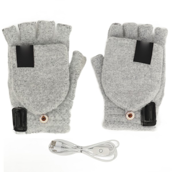 1Pair USB Heated Gloves Adjustable Temperature Electric Heated Gloves for Ski Hiking Cycling 5V Gray