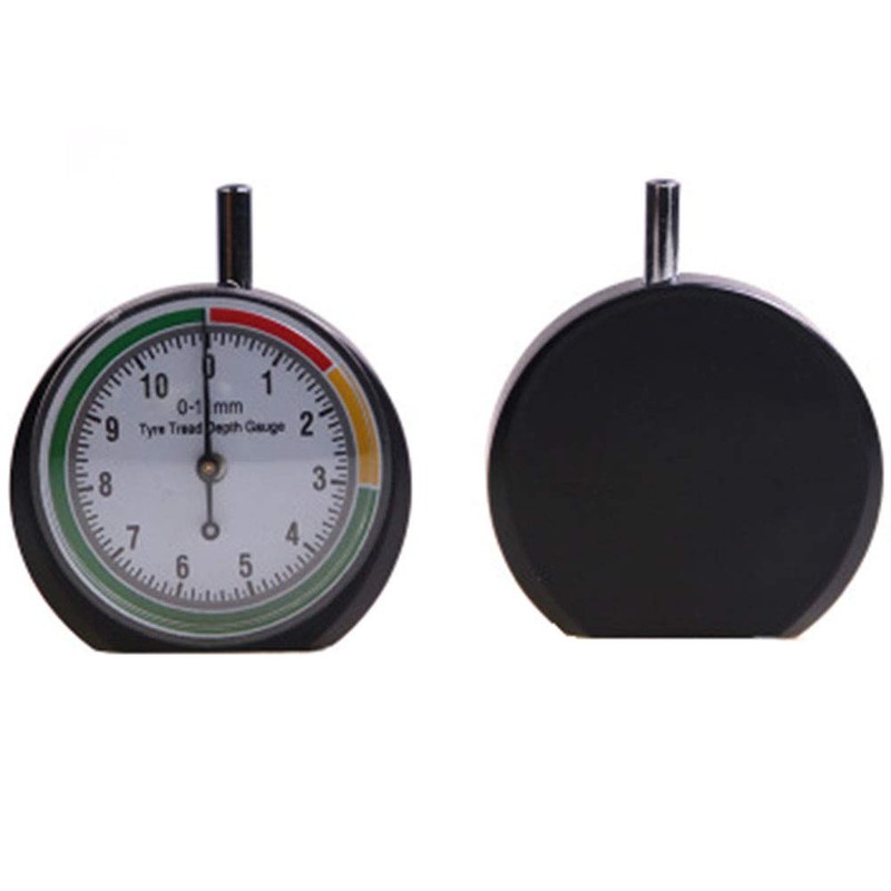 - Type: Tread Depth Gauge ; Material: Stainless Steel ; Measurement rang: 0-11mm; Size: 6cm x 5cm x2.3cm/2.36" x 1.97" x 0.91" (Approx.) ; Quantity: 1 piece Net Weight: 90g ; Features: Cylindrical Measuring Bar, Round Dial, Pointer Design, Easy to Read, Portable, Durable,Universal.