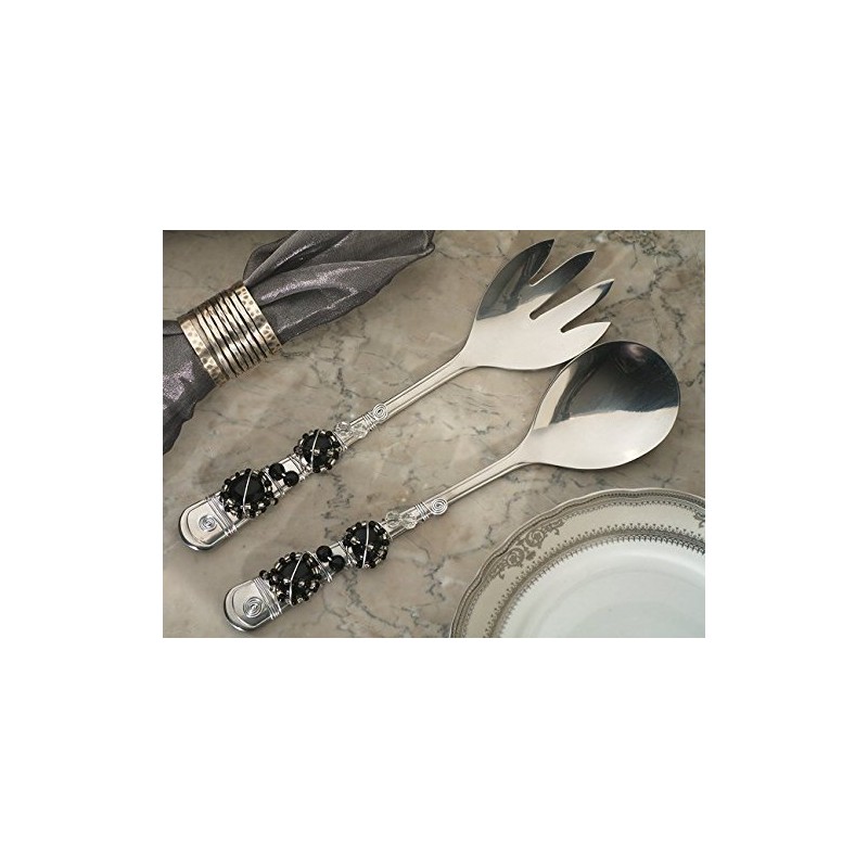 1PC CC2842 Murano Art Deco Salad Server Set With Black Beads Wedding Favors & A