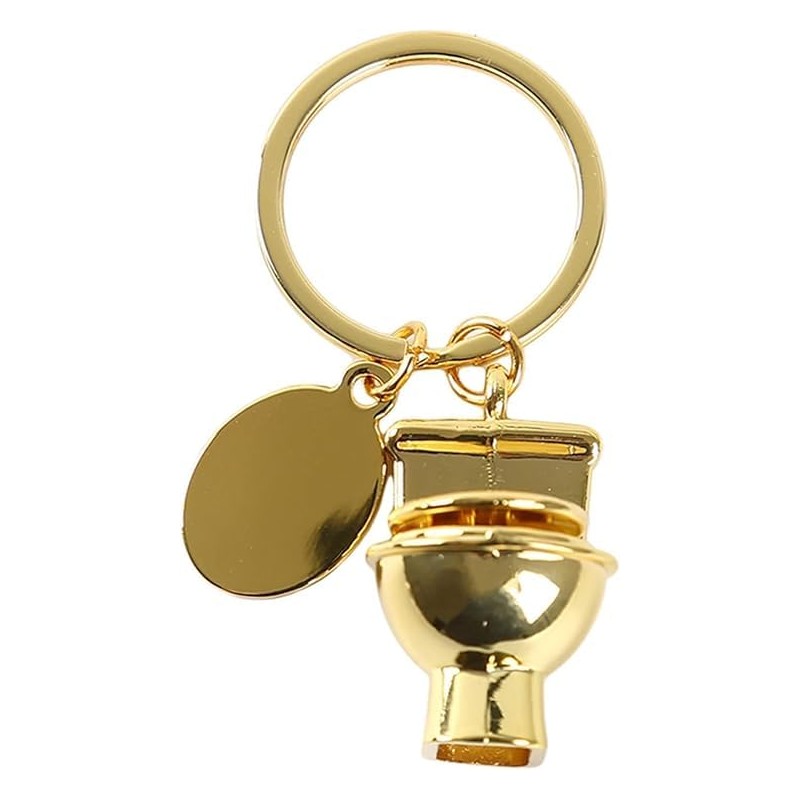 - Unique Keychain: This 1-piece golden toilet-shaped metal keychain is a creative and personality-packed accessory for your keys.