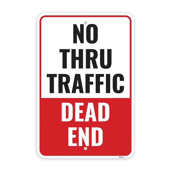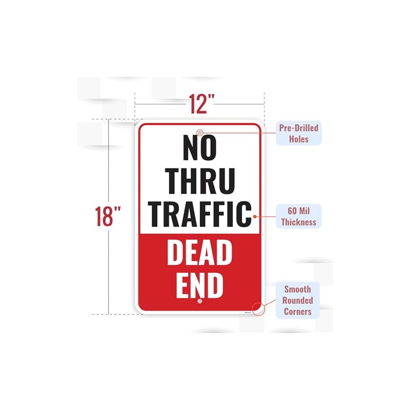 1PC No Thru Traffic Dead End Sign, 18 x 12 Inches - Aluminum - No Outlet No Turn Around No Through Traffic Sign