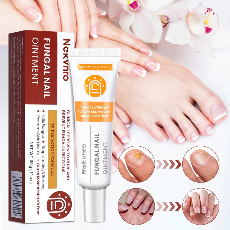 Pomada antifúngica de uso tópico diseñada para tratar infecciones por hongos en uñas de pies y manos, ayudando a restaurar su apariencia saludable con una fórmula concentrada