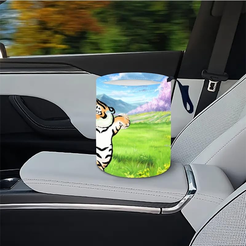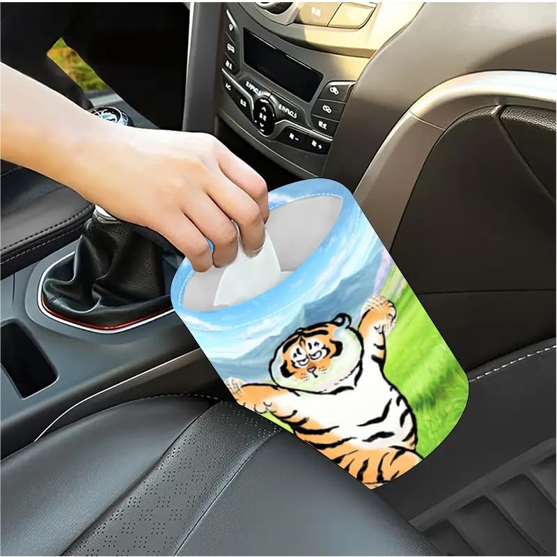 1pc Printed Car Trash Can, Kitchen Camping Trash Can,Waterproof Trash Can, Women's Car Accessories, Car Seat Back Use Car Interior Accessory Storage Bag Collapsible Trash Container (kung fu tiger)