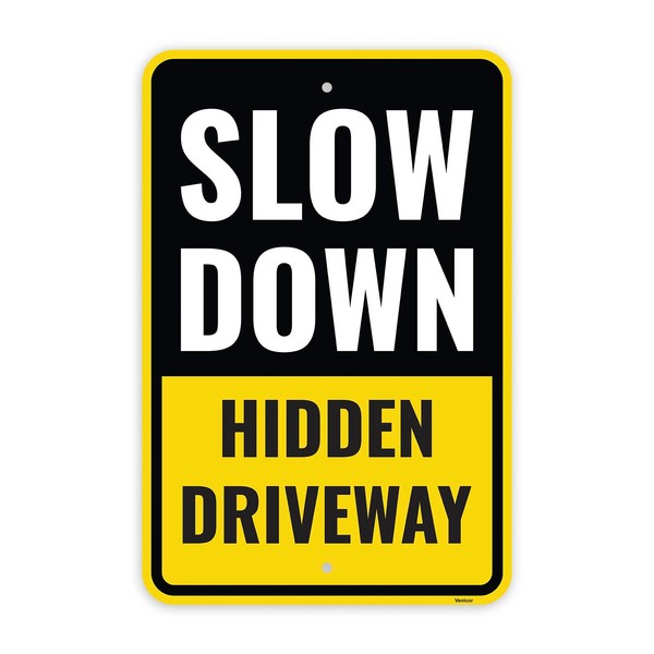 1PC Reflective Hidden Driveway Sign, 18 x 12 Inches - Aluminum - Slow Signs For Driveway
