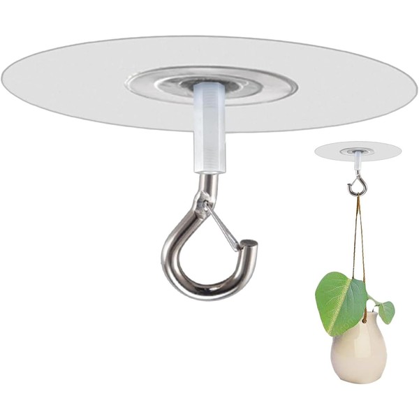 1pc Silver Adhesive Ceiling Hook-Weight-Bearing Stick-On Ceiling Hooks, Sticky Ceiling Hook,Drill Free Hanging Ceilings Hook with Safety Clasp,Water Resistant Hooks for Ceilings Plants Chimes,Hardware