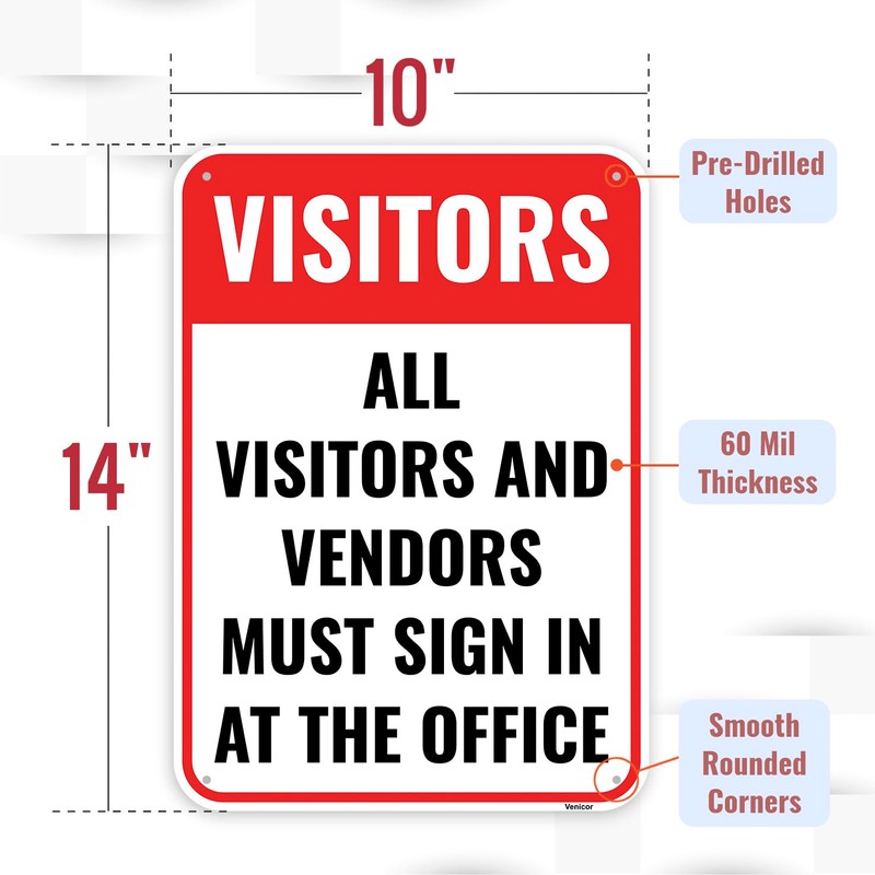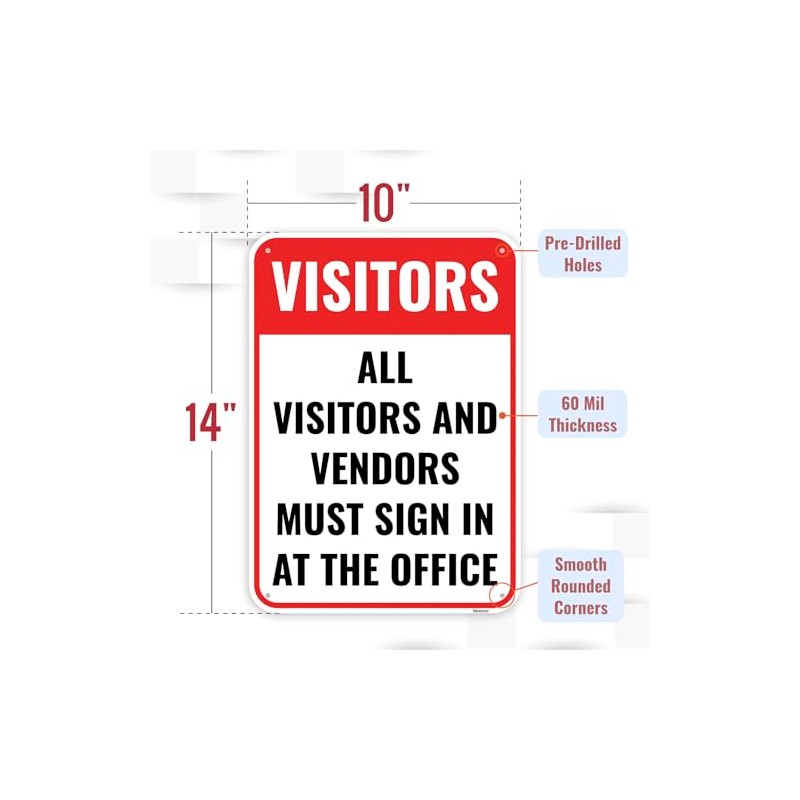 1PC Visitor Check In Sign, 14 x 10 Inches - Aluminum - All Visitors And Vendors Must Sign In At Office