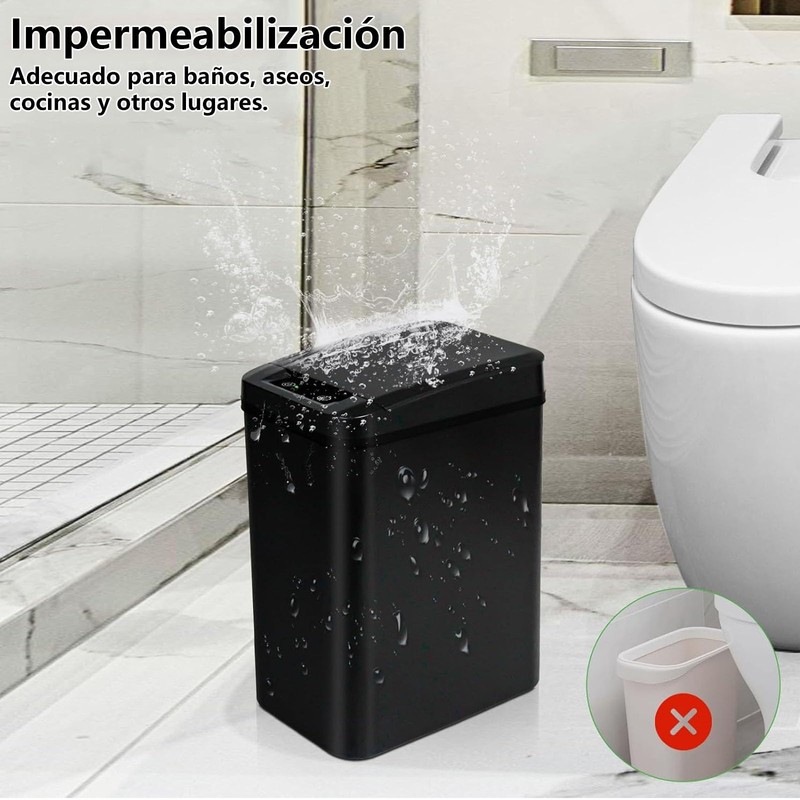 - 【Diseño a Prueba de Agua】Este bote de basura baño es resistente a la humedad y las salpicaduras. Gracias a su diseño impermeable, mantiene su funcionamiento perfecto incluso en ambientes húmedos como el baño o la cocina. No tendrás que preocuparte por fallos de funcionamiento debido al contacto con el agua, lo que lo convierte en una opción ideal para usar en cualquier área de tu hogar.