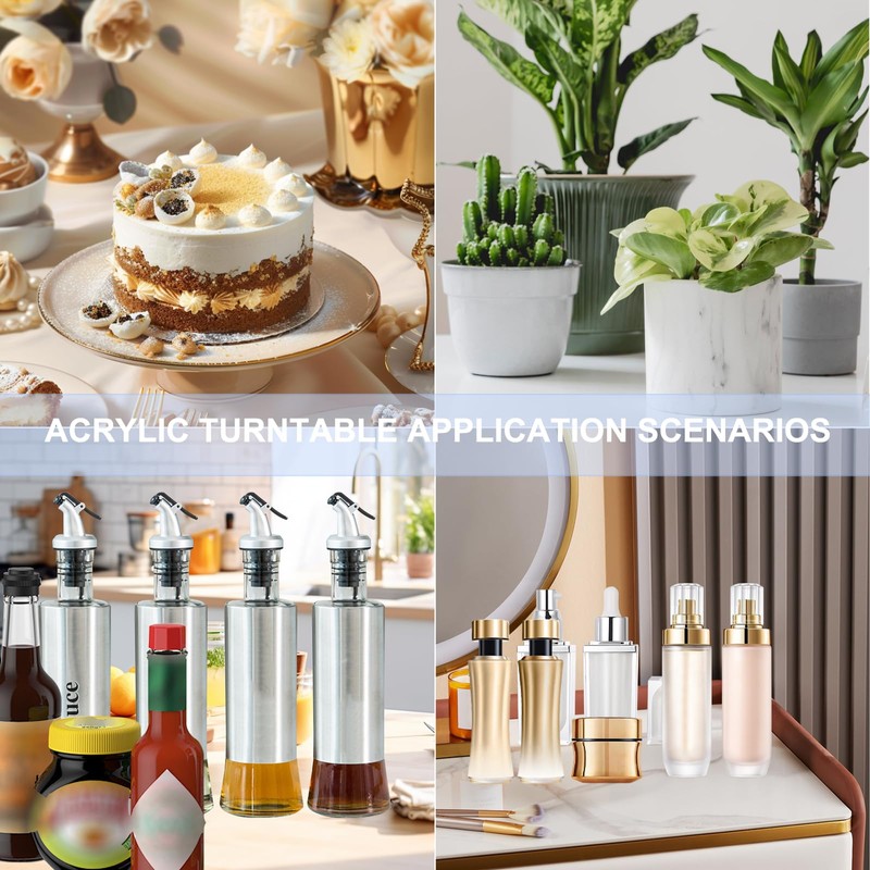 - Multipurpose Acrylic Lazy Susan Turntable: The white lazy susan turntable for tables, pantry, kitchen countertop, cabinets, display plants, bathrooms, office potted plants, and more. Use acrylic rotating base to display your products in shop windows, kitchen, storage rooms, refrigerators, handicrafts, bathroom, jewelry shop and electronic products etc
