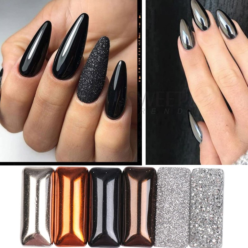 - 【Package includes 】Autumn Winter Nail Art Glitter .Multi Chrome Manicure Pigment Glitter Dust for Salon Home Nail Art DIY Deco with Sponge.1 black chrome nail powder for nails in mirror effect with the sponge stick. Size: about 1g nail pearl powder, about 1/2 full for each box, which is sealed and packaged individually.