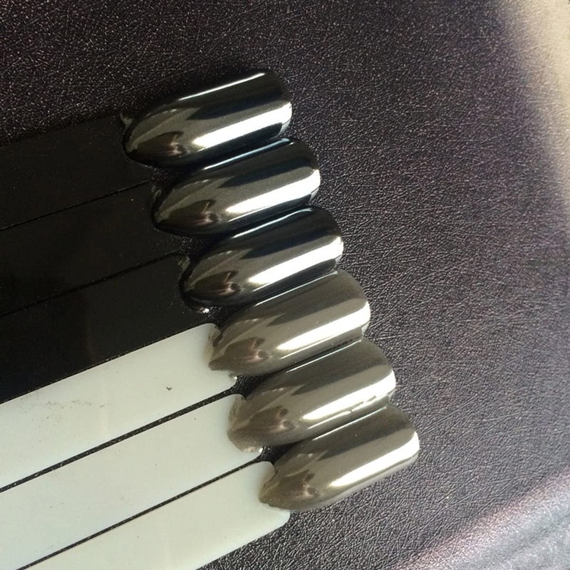 - Chrome effect when you apply it on black base gel, pearl effect and Iridescent nail when you apply it on white base gel.Just use this nail pearl powder with your favorite base gel to create your own nail art style.silver chrome nail powder,mirror nail powder