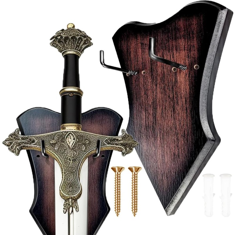 - 【Package】: Included: 1 piece of medieval sword hanger with mounting hardware. Material: Density board.