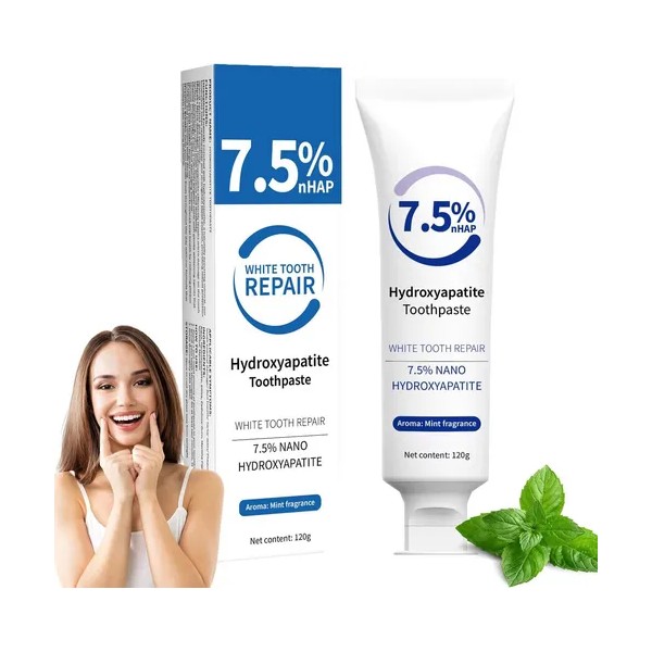 Esta pasta dental con hidroxiapatita está diseñada para reparar y proteger el esmalte dental, reduciendo el riesgo de caries y erosión, y promoviendo la salud bucal a largo plazo.