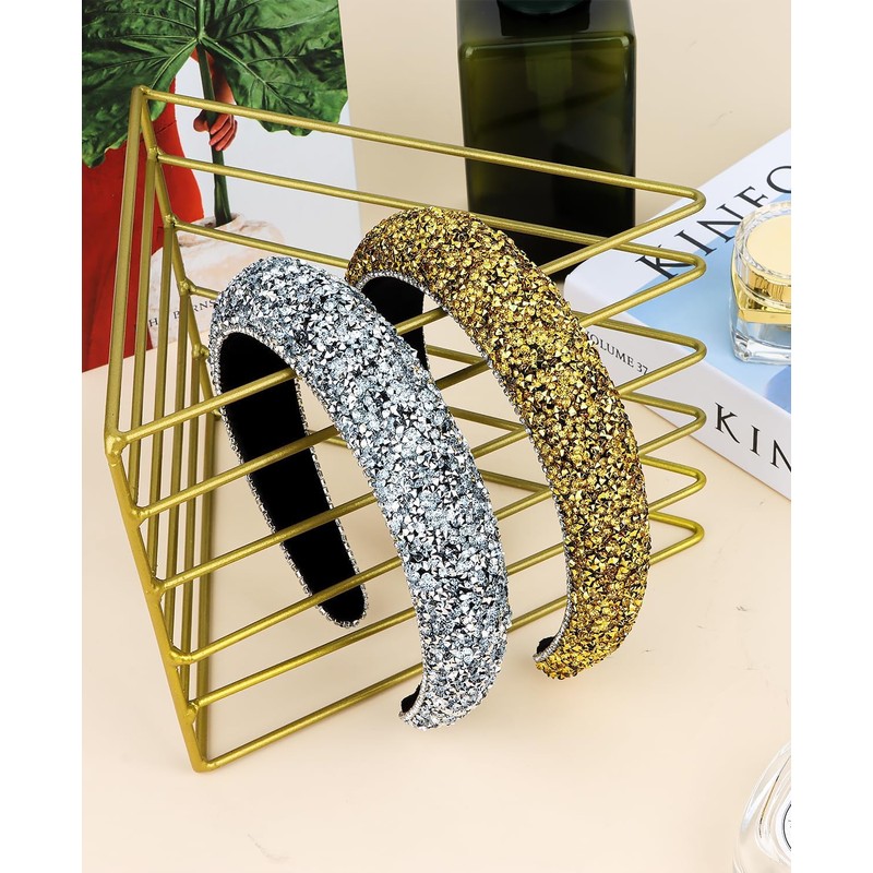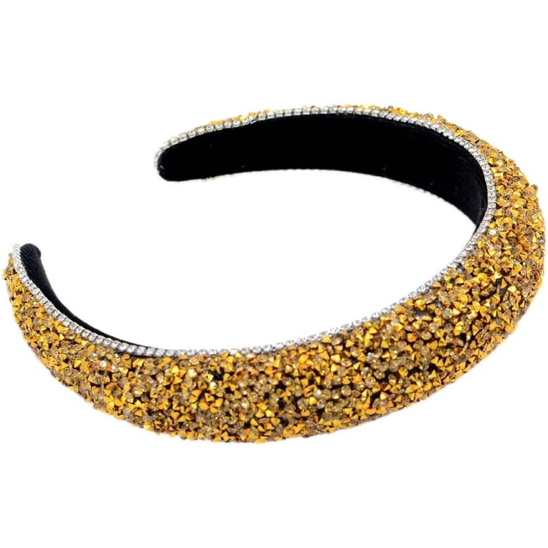 - ✨【Chic and Trendy Design】: With its thick and bulky structure, this headband makes a bold statement. The combination of glittery rhinestones and sleek gold tones creates a fashionable accessory that complements any hairstyle, from sleek updos to loose waves.