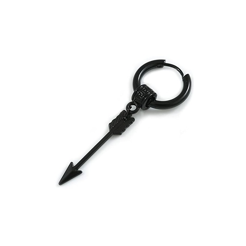 1Pcs Single Dangle Arrow Charm Hoop Huggie Earring for Unisex/Men/Women In Black Tone/ 18mm D